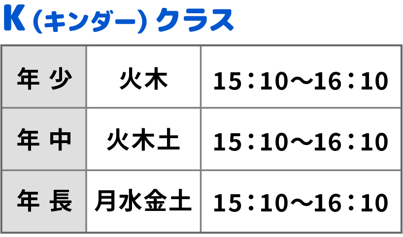 ※K・S・Aクラスは、お子様の年齢、経験、目的に合わせてどなたでも受講できます。